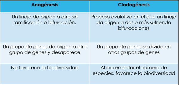 Existen varias diferencias clave entre anagénesis y cladogénesis que son importantes para comprender cómo funcionan estos procesos en la evolución. A continuación, se detallan algunas de las principales diferencias: