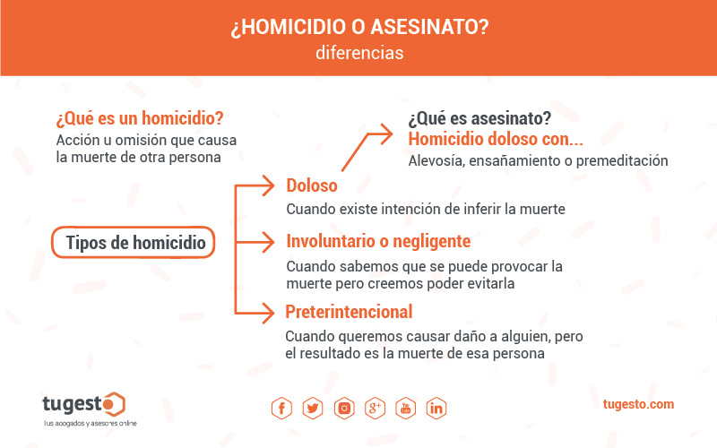 - Intención: El asesinato implica una intención de matar, mientras que el homicidio involuntario no.