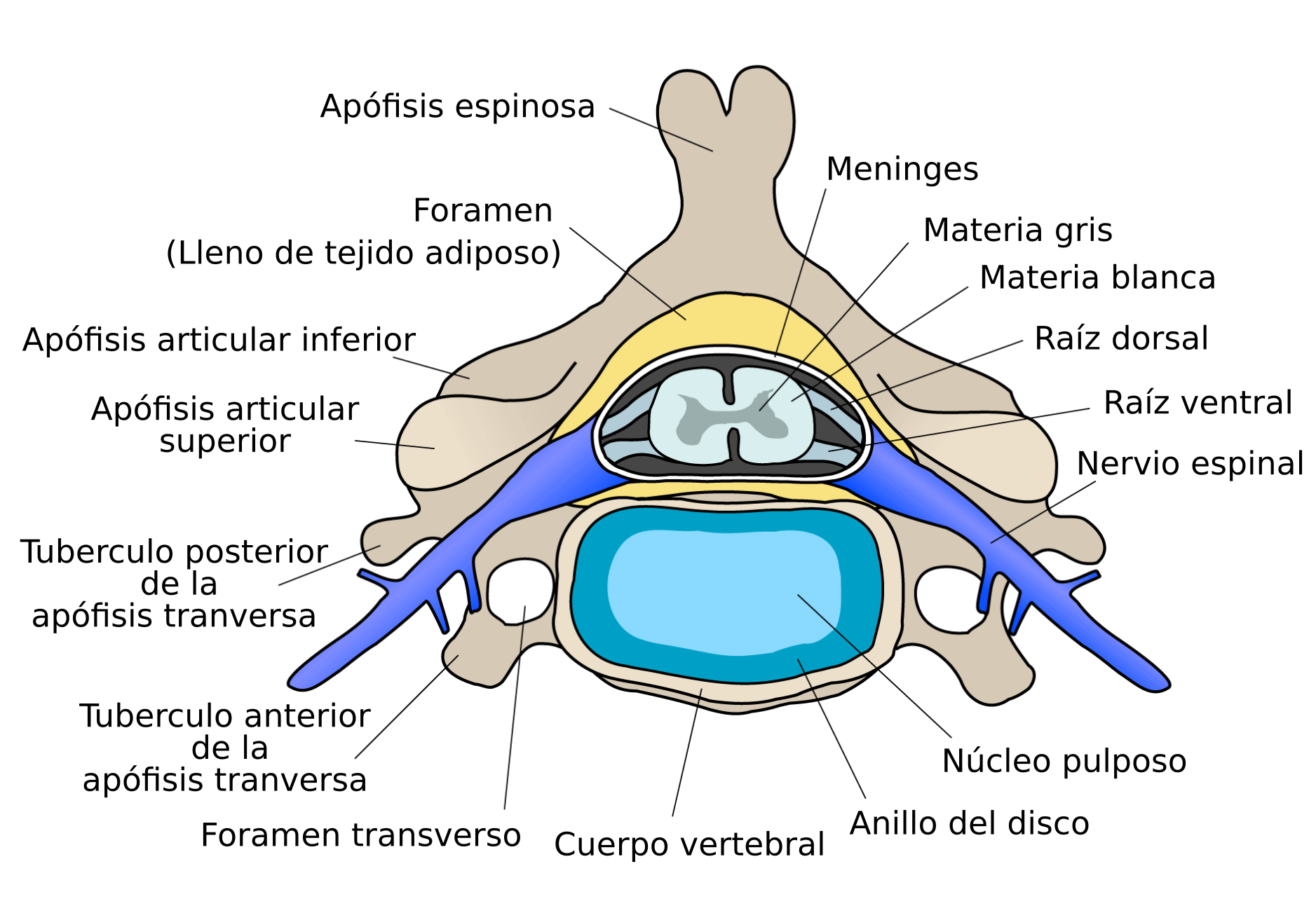 - Núcleo pulposo: Compuesto por un gel que absorbe impactos, proporciona amortiguación y flexibilidad.
