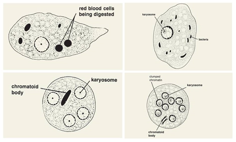En contraste, la Entamoeba coli también tiene un ciclo de vida similar, pero generalmente se considera no patógena. Sus quistes son también la forma infectante, pero los trofozoítos de Entamoeba coli no suelen causar daño en el intestino. Esto significa que la presencia de Entamoeba coli en el intestino humano no se asocia con síntomas clínicos, a diferencia de Entamoeba histolytica, que puede causar amebiasis.