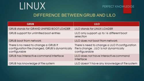 - LILO: Aunque LILO también puede gestionar múltiples sistemas operativos, su configuración es menos intuitiva y no puede detectar automáticamente otros sistemas operativos, lo que puede resultar en una experiencia menos amigable para el usuario.
