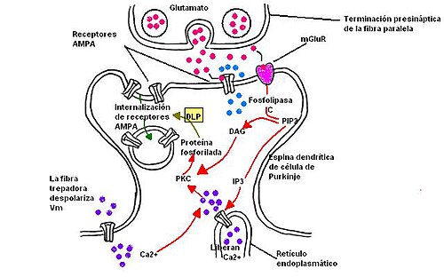 - Desensibilización de receptores: Se reduce la cantidad de receptores AMPA en la membrana, disminuyendo la eficacia sináptica.