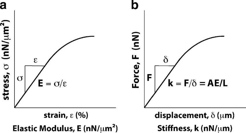 El módulo de elasticidad, también conocido como módulo de Young, es una medida de la capacidad de un material para deformarse elásticamente cuando se le aplica una carga. En otras palabras, describe cómo un material se alarga o se comprime bajo tensión o compresión. Este módulo se define como la relación entre el estrés (fuerza por unidad de área) y la deformación (cambio en la longitud dividido por la longitud original) en la región elástica del material. Un material con un alto módulo de elasticidad es más resistente a deformarse bajo carga, mientras que un material con un bajo módulo de elasticidad se deformará más fácilmente.