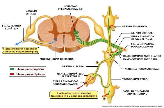 Las neuronas preganglionares son aquellas que se encuentran en el sistema nervioso central y que envían sus axones hacia un ganglio, donde hacen sinapsis con las neuronas posganglionares. Estas neuronas son parte del sistema nervioso autónomo, que se divide en dos ramas: el sistema nervioso simpático y el sistema nervioso parasimpático. En el sistema simpático, las neuronas preganglionares se originan en la médula espinal, específicamente en la región torácica y lumbar. Por otro lado, en el sistema parasimpático, estas neuronas se originan en el tronco encefálico y en la región sacra de la médula espinal.