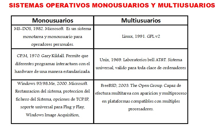 Ejemplos de sistemas operativos monousuario y multiusuario
